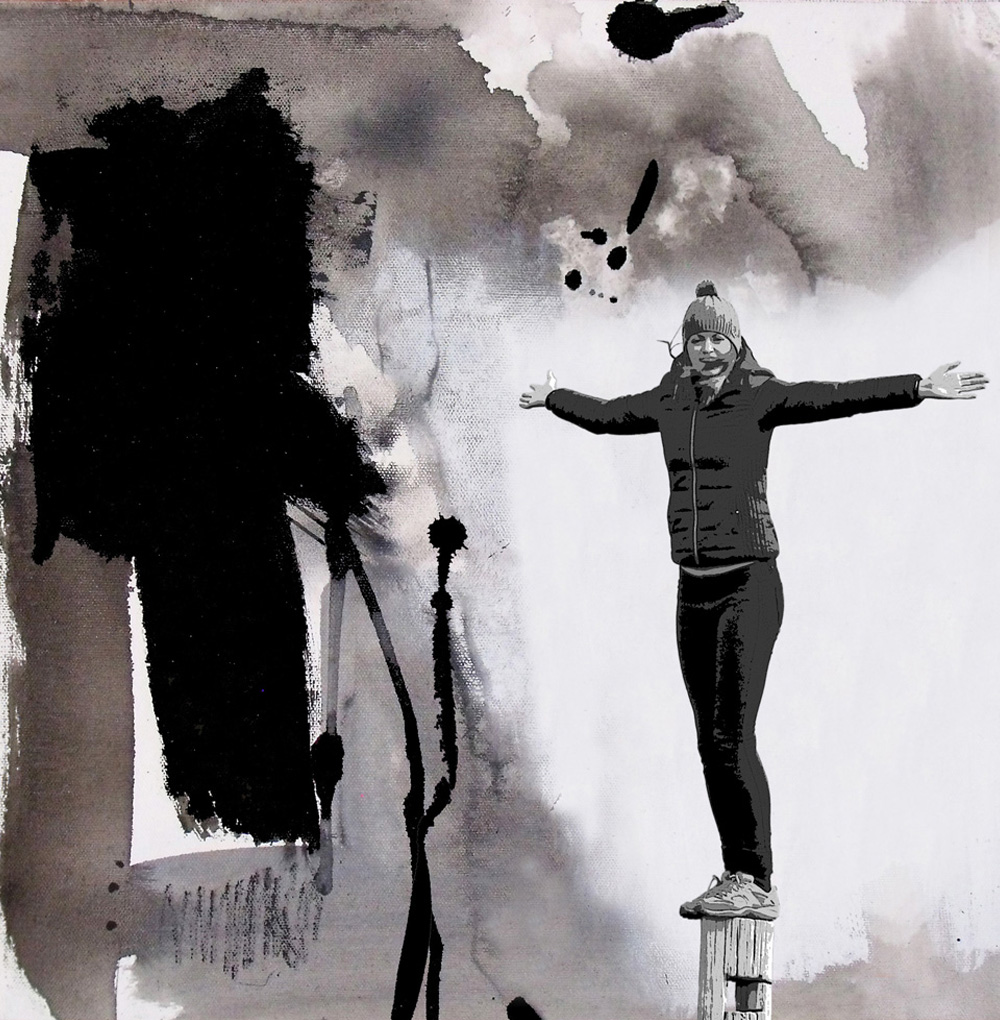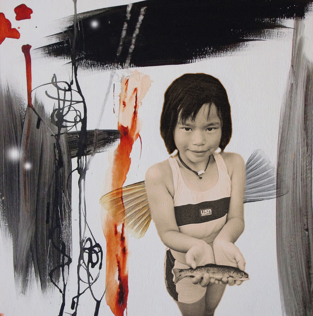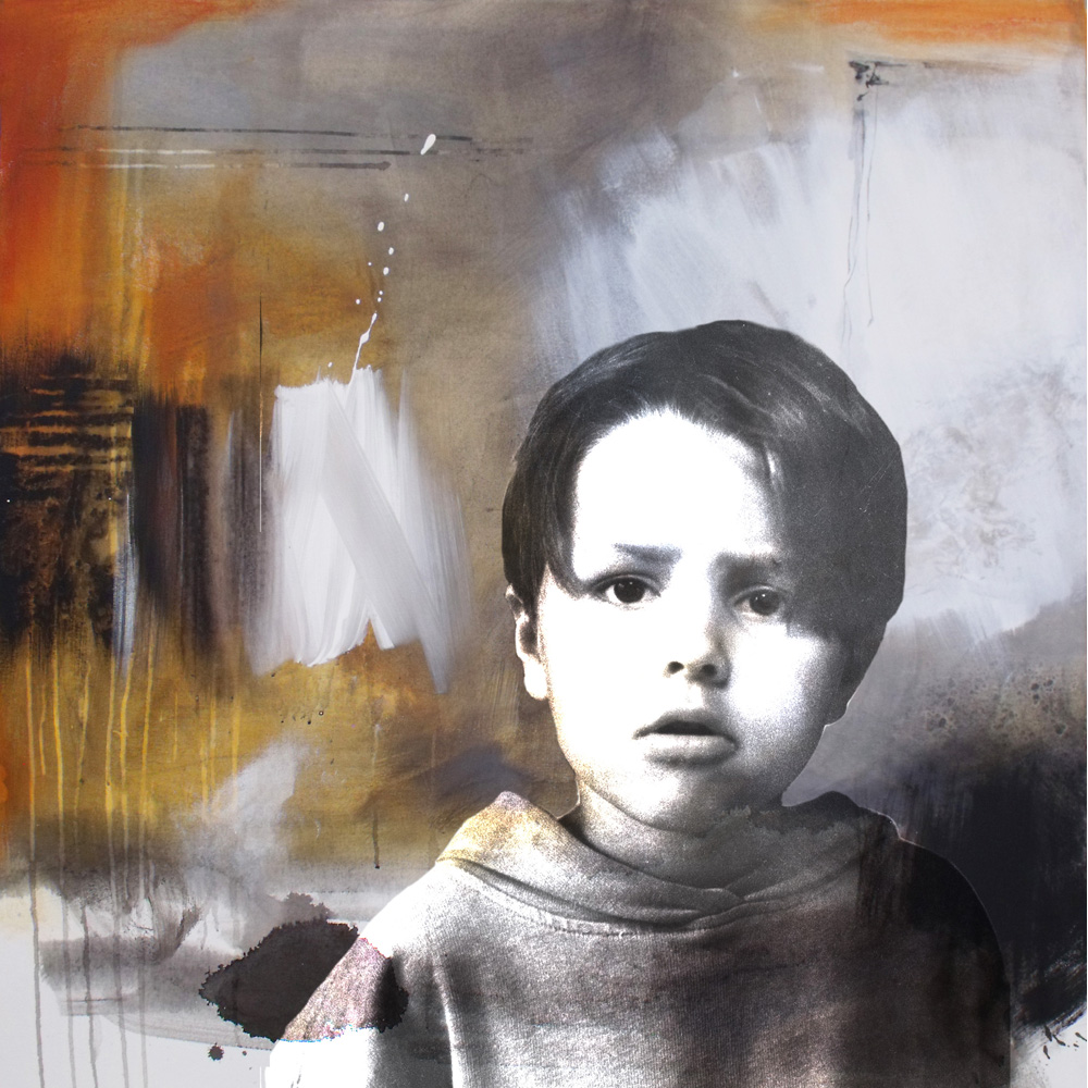 Oeuvres numériques. Des portions de photos ou de dessins sont intégrées numériquement à certains tableaux. La lecture de l’oeuvre prend un tout autre sens.